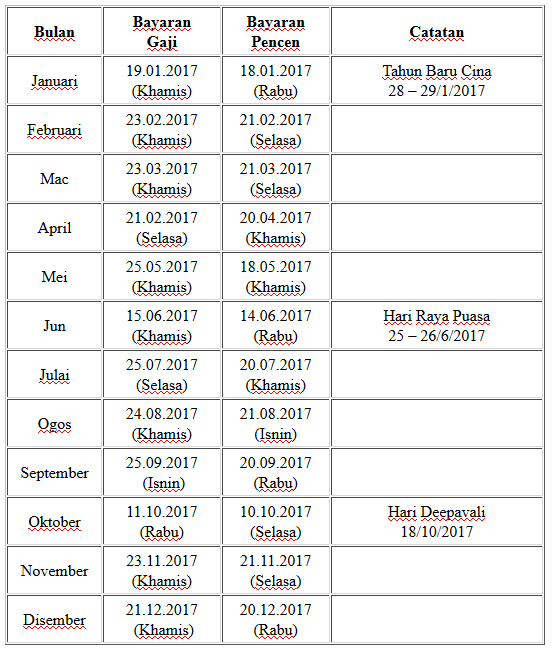 Tarikh Bayaran Gaji Dan Pencen Bagi Tahun 2017 Another Stuff