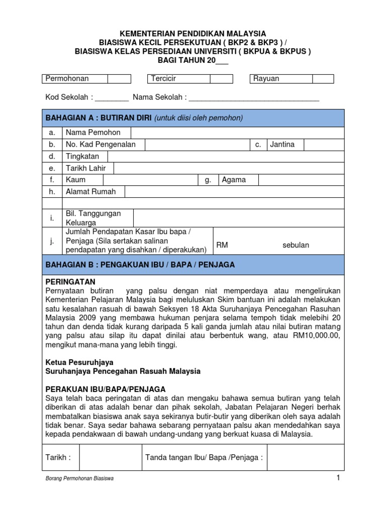 Borang Permohonan Biasiswa Bkp Bkpu Lampiran A 1