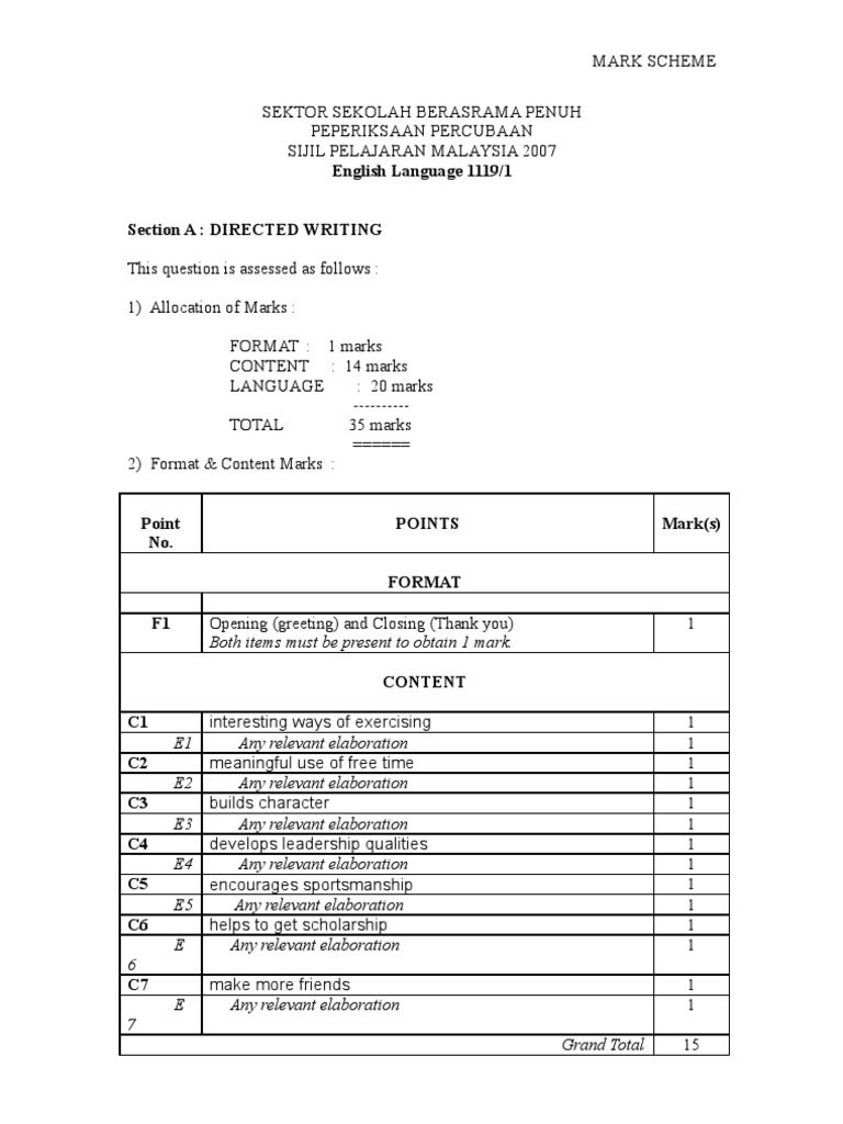 Spm Percubaan 2007 Sbp English Language Paper 1 Marking Scheme Error Vocabulary