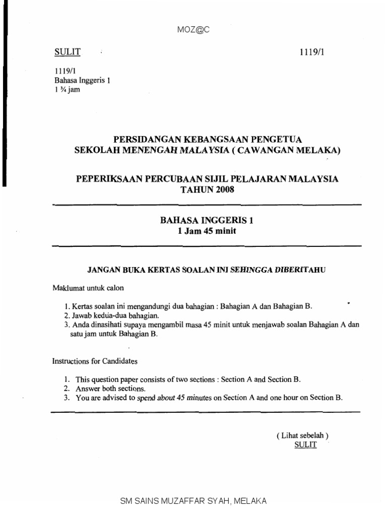 English K1 Melaka 1 Spm