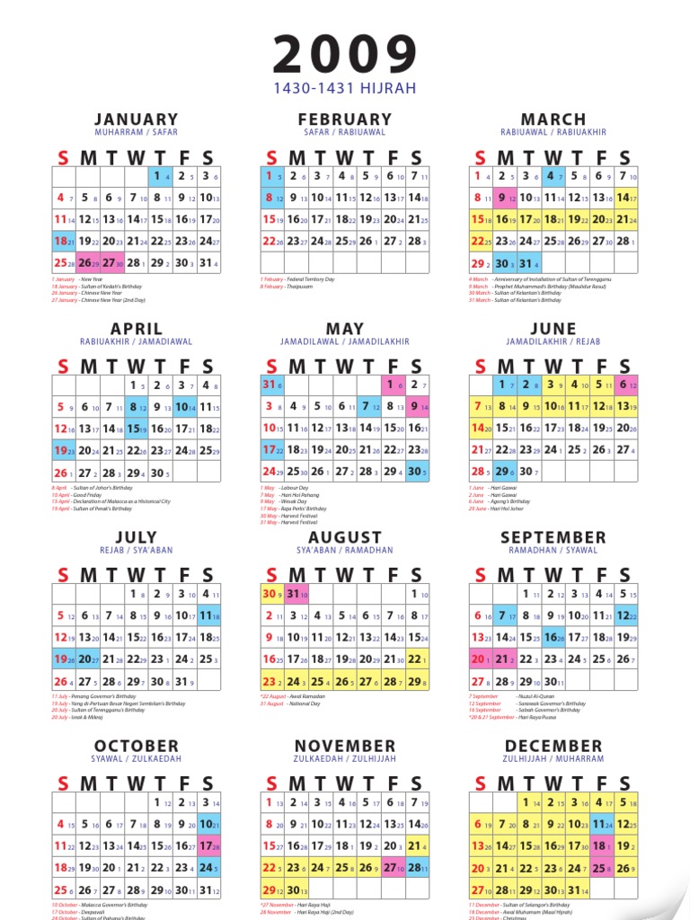 Calendar 2009 Hijrah 1430 1431 Strait Of Malacca Malaysia