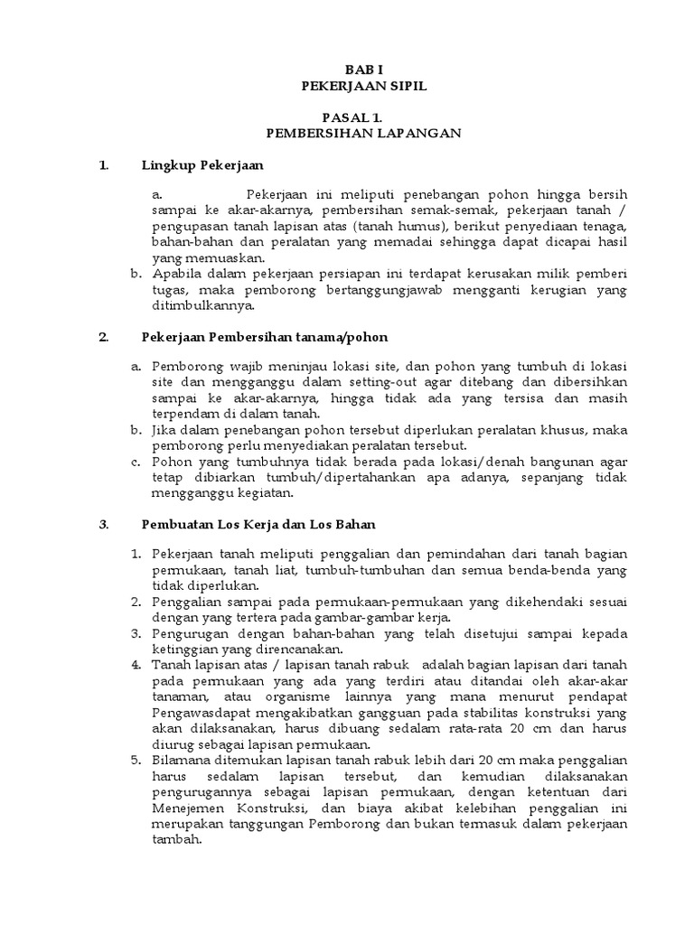 Bab I Pekerjaan Sipil Pasal 1 Pembersihan Lapangan 1 Lingkup Pekerjaan