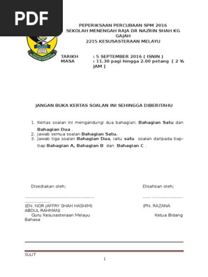 Soalan Percubaan Spm 2016 Bahasa Melayu Kertas 2 Pdf Document