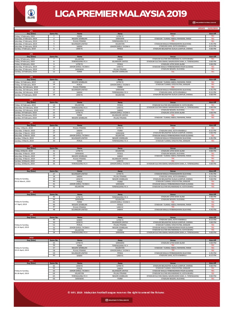 Liga Premier Malaysia 2019 C Mfl 2019 Malaysian Football League Reserves The Right To Amend The Fixtures Sarawak Association Football Teams Free 30 Day Trial Scribd