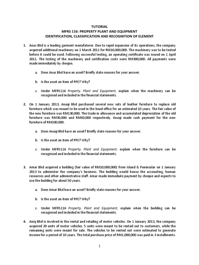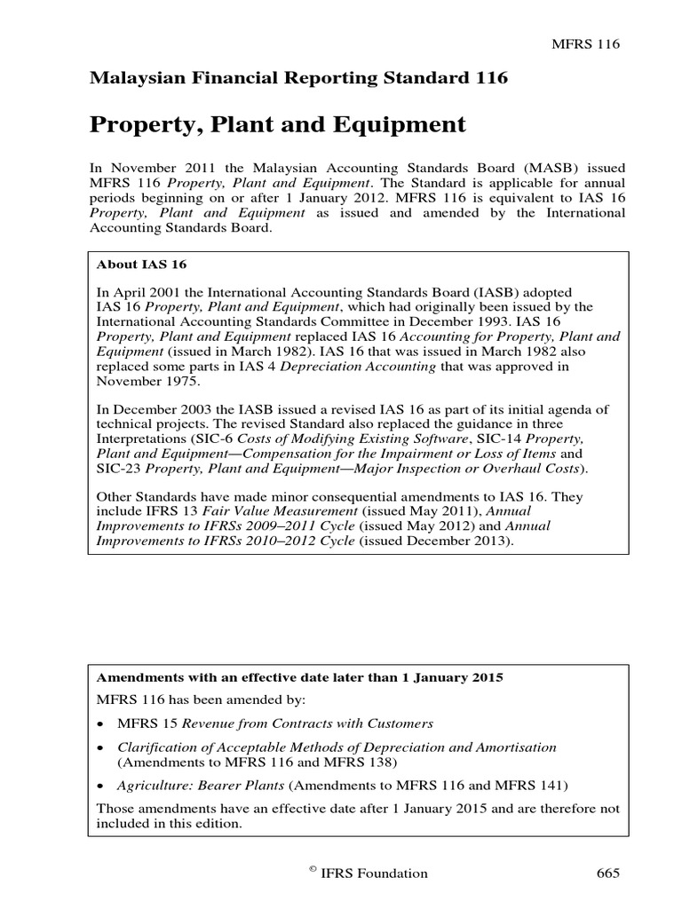 1 Mfrs 116 Ppe S International Financial Reporting Standards Fixed Asset