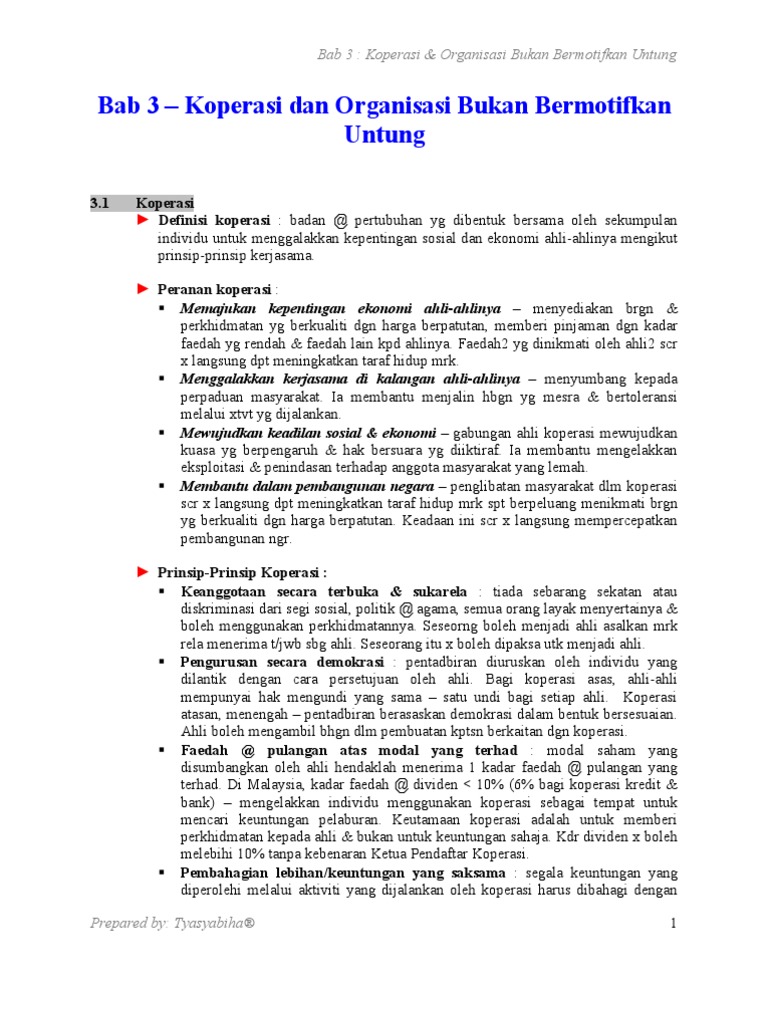 Bab 3 Koperasi Dan Organisasi Bukan Bermotifkan Untung