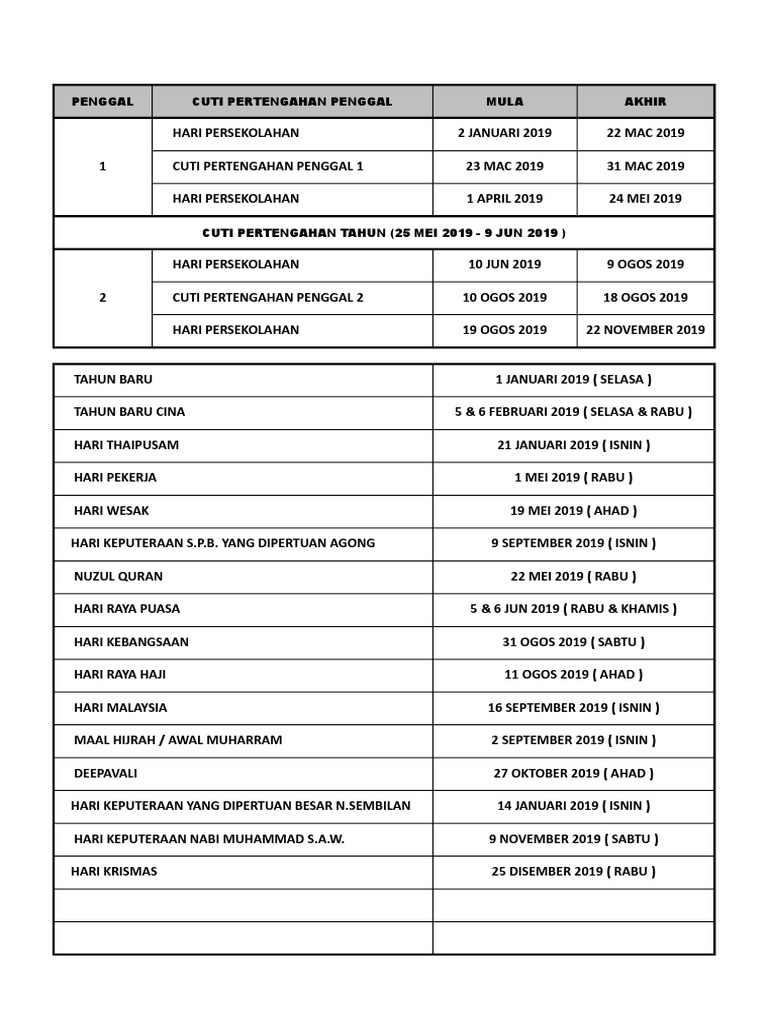 Penggal Sekolah Cuti Umum Cuti Perayaan 2019 Sk Setapak Indah Pages 1 3 Text Version Anyflip