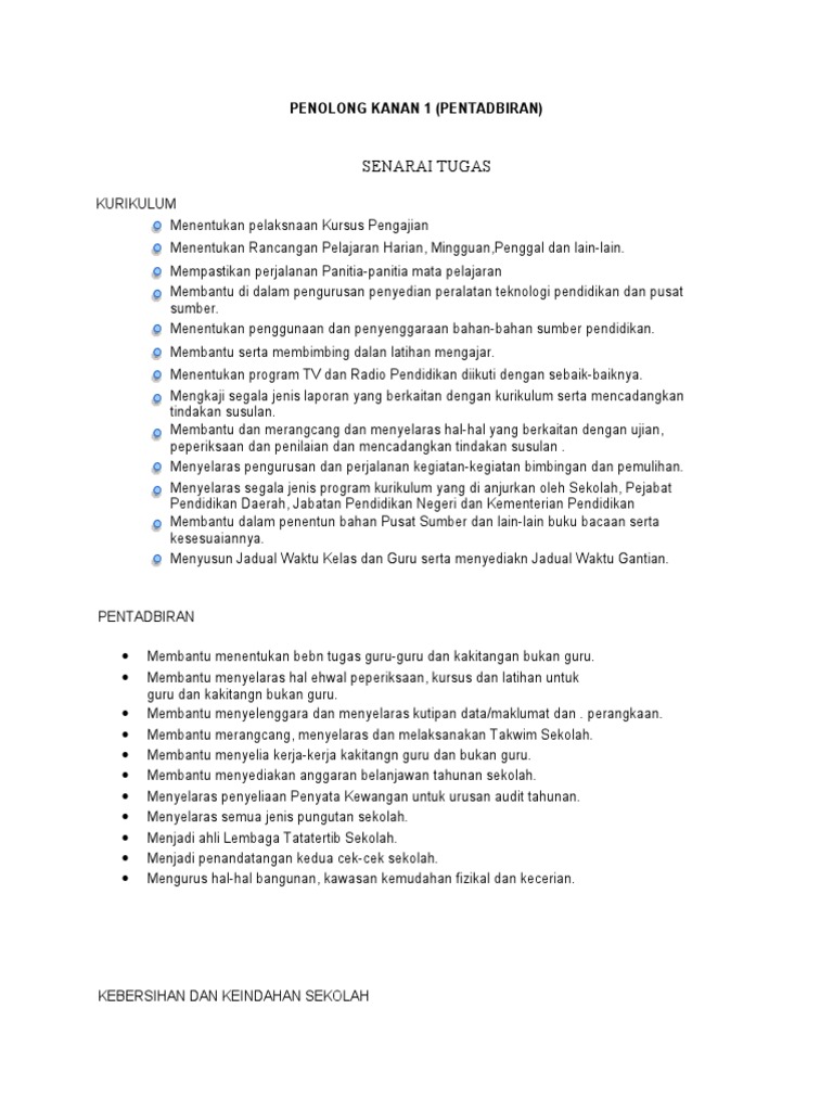 Senarai Tugas Penolong Kanan 1