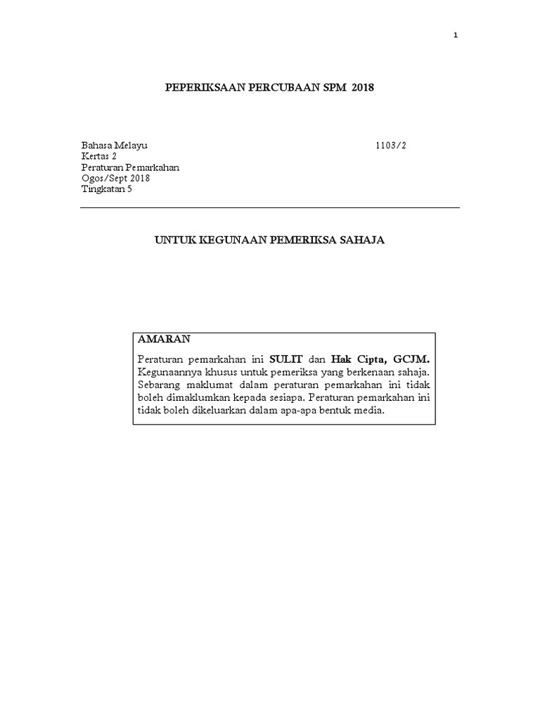 Soalan Percubaan Bm Spm 2018