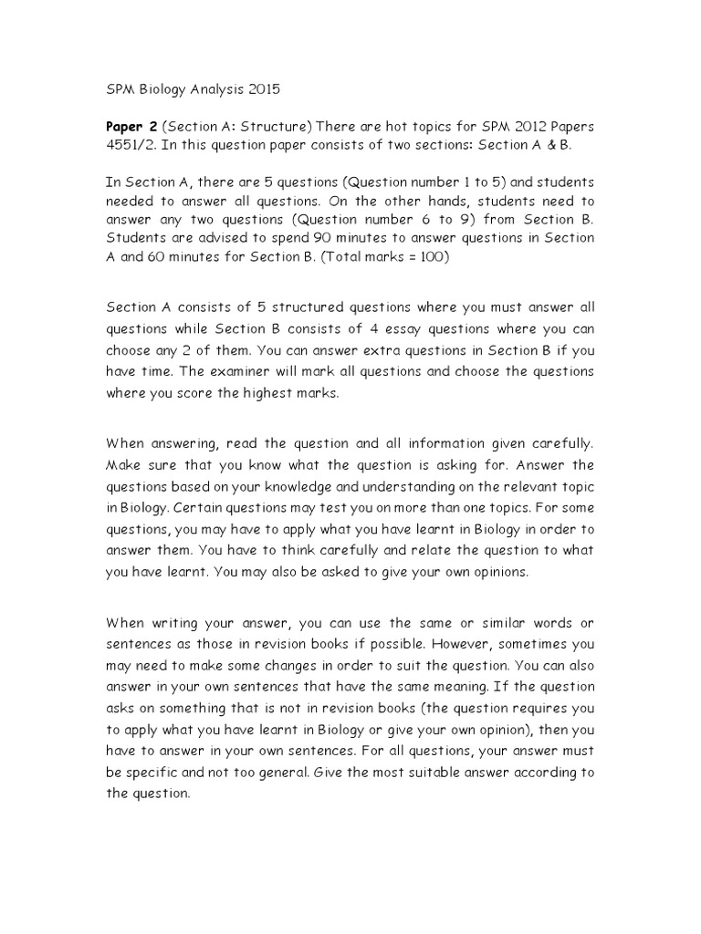 Spm Biology 2015 Paper 1 Answers Mr Sai Mun